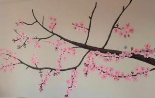 A new friend told Marie about a quiet dream she had carried for years: a wall of cherry blossoms. Not a print, not a sticker, but real brushstrokes of