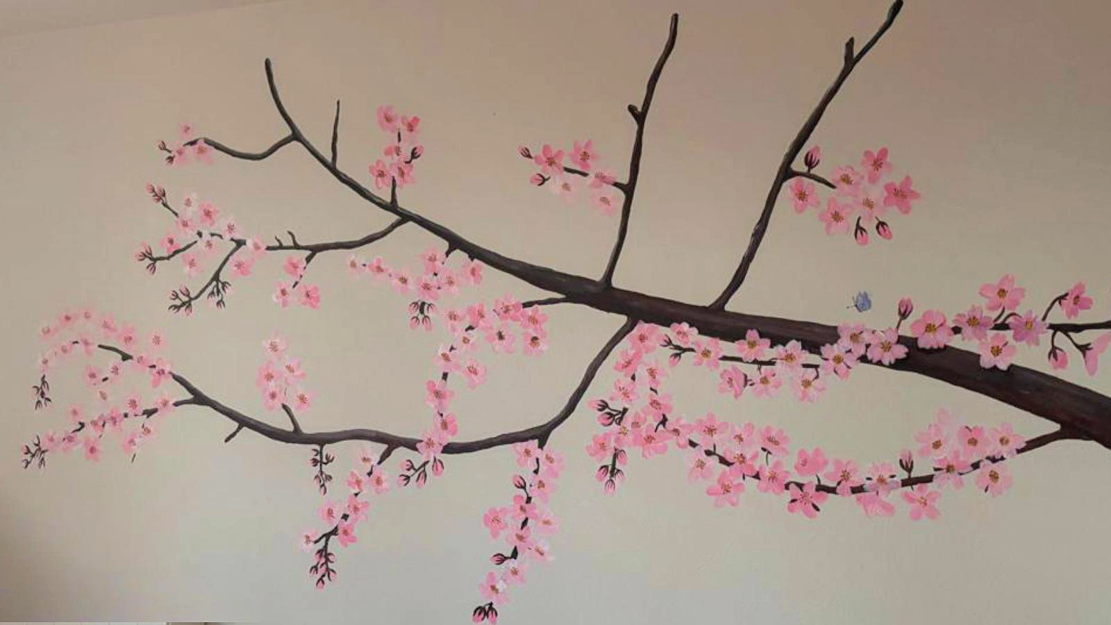 A new friend told Marie about a quiet dream she had carried for years: a wall of cherry blossoms. Not a print, not a sticker, but real brushstrokes of morning light drifting across soft pink petals. Across from the double bed, on the longest blank wall in her bedroom, she sketched delicate branches in pencil. Then she began painting, mixing translucent pinks and whites, and finally adding a few tender leaves. As a last touch, she painted a butterfly and a couple of bees. After decades, her friend’s wish was finally granted. In Ariège, spring now lives year-round — one bedroom wall at a time. Dreaming of your own forever-bloom? Let’s talk walls.